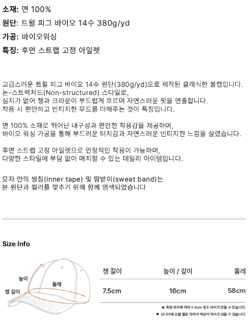 14수 피그먼트 트윌 바이오 워시드 캡 (그린)
